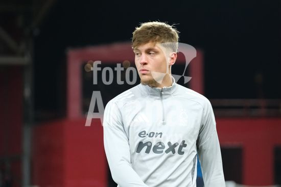 2882240 Luca Netz, do Nottingham Forest, durante o aquecimento pre-jogo na partida da Premier League entre Nottingham Forest e Wolverhampton Wanderers, no City Ground, em Nottingham. (Paul Bonser/Sports Press Photo / SPP)