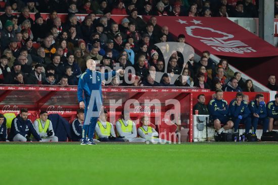 2882605 O treinador do Nottingham Forest, Sean Dyche, da instrucoes a sua equipe durante a partida da Premier League entre Nottingham Forest e Wolverhampton Wanderers no City Ground, em Nottingham. (Paul Bonser/Sports Press Photo / SPP)