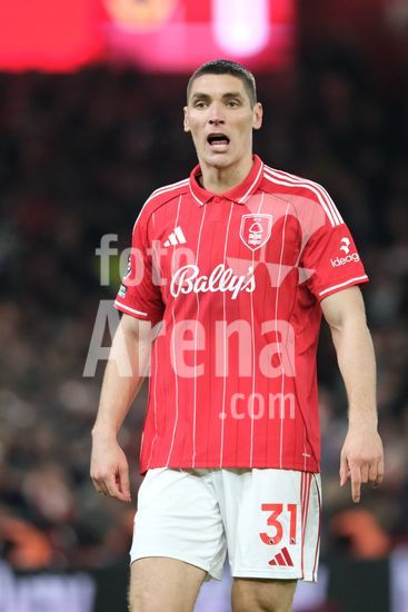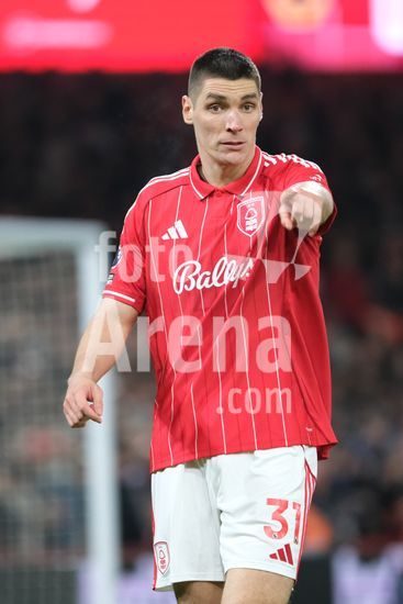 2882601 Nikola Milenkovic, do Nottingham Forest, da instrucoes a sua equipe durante a partida da Premier League entre Nottingham Forest e Wolverhampton Wanderers, no City Ground, em Nottingham. (Paul Bonser/Sports Press Photo / SPP)
