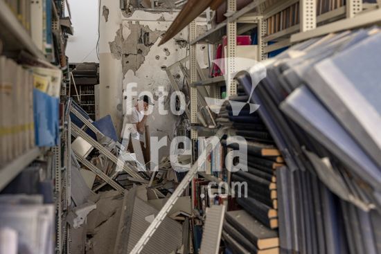 ny060426125212 A man inspects damage inside the library of an ultra-Orthodox girls? school following a missile string in Tel Aviv, Israel, on Monday, April 6, 2026. Iran said on Monday that it would retaliate forcefully if President Donald Trump carries out his threat to strike Iranian power plants and bridges unless Tehran ends its chokehold on the Strait of Hormuz. (Avishag Shaar-Yashuv/The New York Times/Fotoarena)