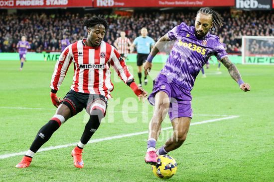 2854567 Sorba Thomas (7 Stoke City) controla a bola durante a partida do EFL Sky Bet Championship entre Sheffield United e Stoke City em Bramall Lane, Sheffield, Inglaterra, em 6 de dezembro de 2025. (Sean Chandler / SPP)