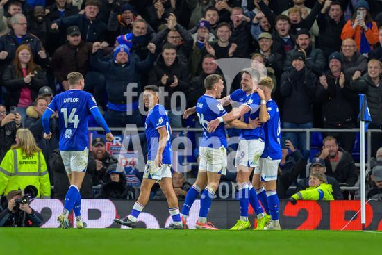 2854595 Jogadores do Ipswich Town comemoram o segundo gol da equipe durante a partida do Sky Bet Championship entre Ipswich Town e Coventry City FC, no Portman Road, em Ipswich, Inglaterra. (Foto de Keeran Marquis/Sports Press Photo/SPP) (Keeran Marquis/SPP)