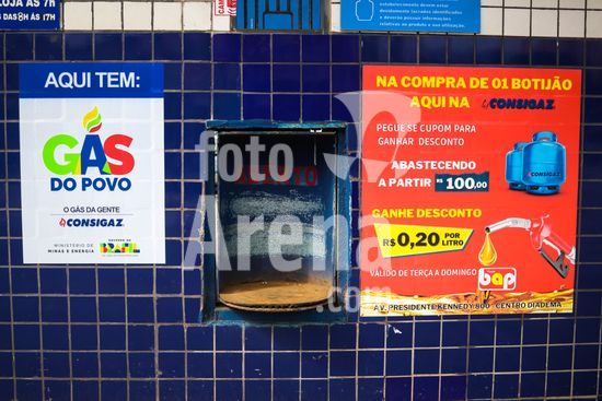 2878992 A Câmara dos Deputados aprovou nesta segunda,(2), a Medida Provisória que cria o programa Gás do Povo. A iniciativa garante a gratuidade do botijão de gás de 13 kg para famílias inscritas no CadÚnico. Imagens mostram a placa do programa na distribuidora Consigaz nesta terça,(3).