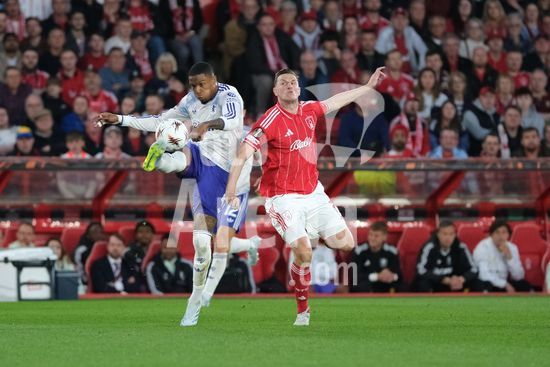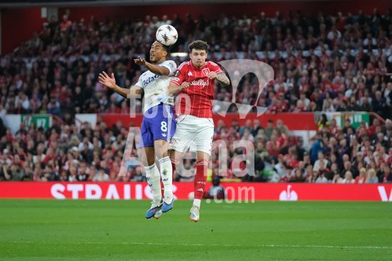 2934518 NOTTINGHAM, INGLATERRA - 30 DE ABRIL: Youri Tielemans, do Aston Villa, ganha a disputa de cabeca com Neco Williams, do Nottingham Forest, durante a partida de ida da semifinal da Liga Europa da UEFA entre Nottingham Forest e Aston Villa, no City Ground, em 30 de abril de 2026, em Nottingham, Inglaterra. (Paul Bonser / Sports Press Photo / SPP)