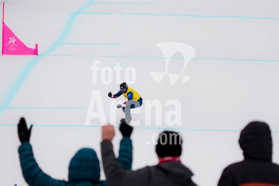 ny120226132213 Alessandro Haemmerle of Austria celebrates after winning the big final of the men?s snowboard cross during the 2026 Milan Cortina Olympic Games in Livigno, Italy, on Wednesday, Feb. 12, 2026. Haemmerle won the gold and Eliot Grondin of Canada, rear, won silver. (Gabriella Bhaskar/The New York Times/Fotoarena)