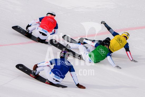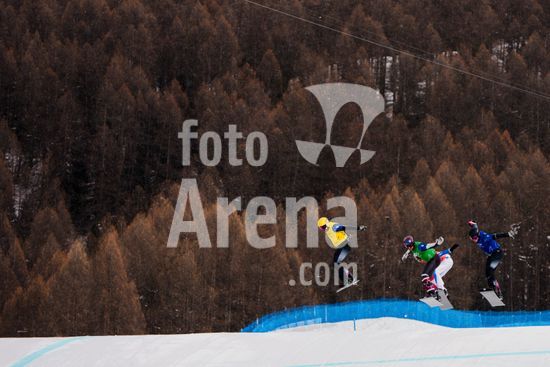ny120226132111 Aidan Chollet of France leads the group at the end of a semifinal run of the men?s snowboard cross during the 2026 Milan Cortina Olympic Games in Livigno, Italy, on Wednesday, Feb. 12, 2026. (Gabriella Bhaskar/The New York Times/Fotoarena)