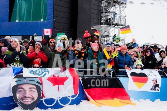 ny120226132312 Fans watch ahead of the men?s snowboard cross finals during the 2026 Milan Cortina Olympic Games in Livigno, Italy, on Wednesday, Feb. 12, 2026. (Gabriella Bhaskar/The New York Times/Fotoarena)