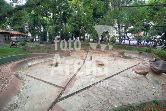 2836929 Lagos da Praça da República, em SP, passam por revitalização. Praça. Republica. Será realizada a impermeabilização das estruturas, que atualmente apresentam perda de água, reforma das instalações hidráulicas e elétricas, atualização do sistema de filtragem e correção das rachaduras. Reforma está atrasada e não tem previsão para acabar. Na foto, lago na Praça da República, centro de São Paulo.