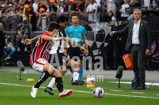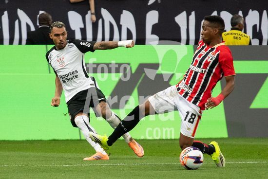 2870103 Bobadilla (São Paulo) e Matheus Bidu (Corinthians) durante a partida entre Corinthians e São Paulo, válida pela 3ª rodada do Paulistão, realizada na tarde deste domingo (18) na Neo Química Arena em São Paulo, SP.