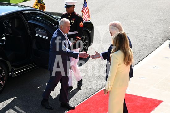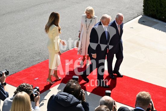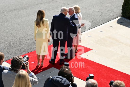ny270426173313 President Donald Trump speaks to King Charles III as he and and first lady Melania Trump, left, greet Charles and Queen Camilla of the United Kingdom at the White House in Washington, on Monday, April 27, 2026. The British royals arrived for a four-day visit hosted by President Donald Trump, including an address to Congress and a banquet at the White House. (Kenny Holston/The New York Times/Fotoarena)