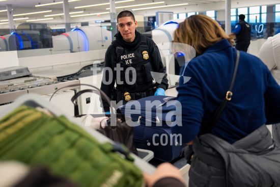 ny270326095611 A federal immigration agent, assigned to the Department of Homeland SecurityÕs Enforcement and Removal Operations division, works at a security checkpoint at LaGuardia Airport in New York on Friday morning, March 27, 2026. The Senate voted early Friday to fund the Department of Homeland Security except for its immigration enforcement and deportation operations, raising the prospect of an end to a weekslong partial shutdown that has strained federal workers and caused long waits at airports. (Vincent Alban/The New York Times/Fotoarena)