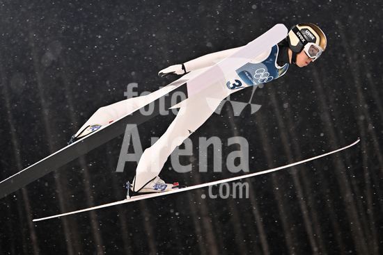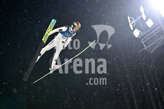 2885232 Predazzo, Italia, 14 de fevereiro de 2026. Stephan Embacher, da Austria, em acao durante a competicao individual de salto de esqui masculino em rampa grande (HS141) dos Jogos Olimpicos de Inverno de 2026 em Predazzo, Italia. (Foto de Igor Kupljenik/Sports Press Photo) (Igor Kupljenik / SPP)