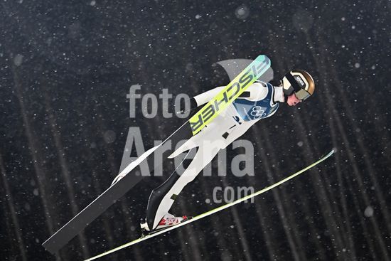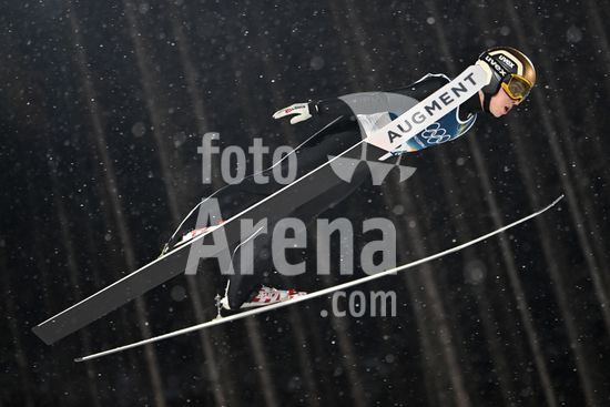 2885238 Predazzo, Italia, 14 de fevereiro de 2026. Felix Hoffmann, da Alemanha, em acao durante a competicao individual de salto de esqui masculino em rampa grande (HS141) dos Jogos Olimpicos de Inverno de 2026 em Predazzo, Italia. (Foto de Igor Kupljenik/Sports Press Photo) (Igor Kupljenik / SPP)