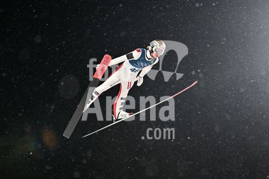 2885251 Predazzo, Italia, 14 de fevereiro de 2026. Naoki Nakamura, do Japao, em acao durante a competicao individual de salto de esqui masculino em rampa grande (HS141) dos Jogos Olimpicos de Inverno de 2026 em Predazzo, Italia. (Foto de Igor Kupljenik/Sports Press Photo) (Igor Kupljenik / SPP)