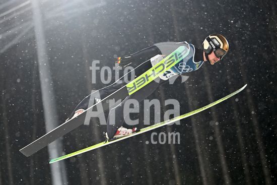 2885241 Predazzo, Italia, 14 de fevereiro de 2026. Alex Insam, da Italia, em acao durante a competicao individual de salto de esqui masculino em rampa grande (HS141) dos Jogos Olimpicos de Inverno de 2026 em Predazzo, Italia. (Foto de Igor Kupljenik/Sports Press Photo) (Igor Kupljenik / SPP)
