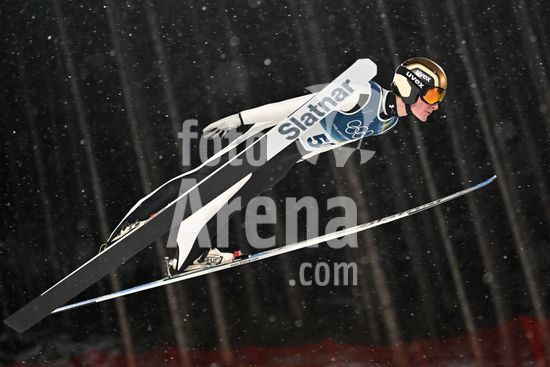 2885218 Predazzo, Italia, 14 de fevereiro de 2026. Anze Lanisek, da Eslovenia, em acao durante a competicao individual masculina de salto de esqui em rampa grande (HS141) dos Jogos Olimpicos de Inverno de 2026 em Predazzo, Italia. (Foto de Igor Kupljenik/Sports Press Photo) (Igor Kupljenik / SPP)
