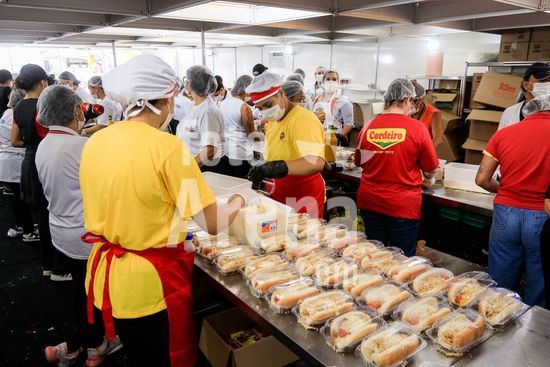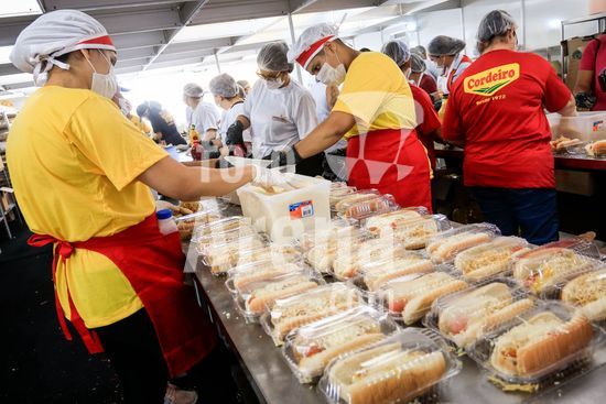 2895750 Em comemoração aos aniversário de 64 anos da emancipação da cidade, Osasco, na região metropolitana de São Paulo, confecciona neste sábado (28), o maior cachorro quente do Brasil com 64 metros, que será distribuído para população.