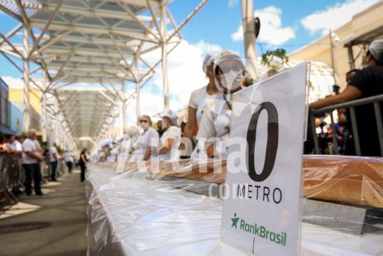 2895747 Em comemoração aos aniversário de 64 anos da emancipação da cidade, Osasco, na região metropolitana de São Paulo, confecciona neste sábado (28), o maior cachorro quente do Brasil com 64 metros, que será distribuído para população. Na foto, pão gigante usado para confecção do cachorro quente.