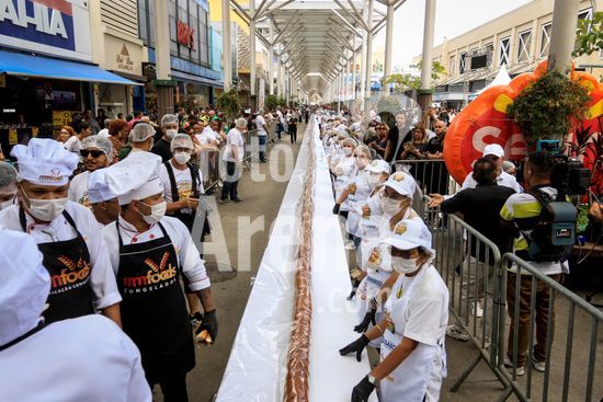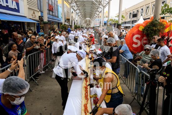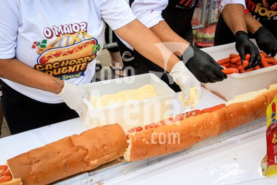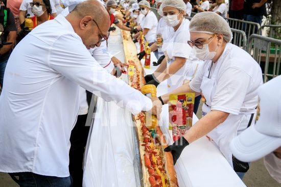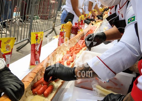 2895732 Em comemoração aos aniversário de 64 anos da emancipação da cidade, Osasco, na região metropolitana de São Paulo, confecciona neste sábado (28), o maior cachorro quente do Brasil com 64 metros, que será distribuído para população.