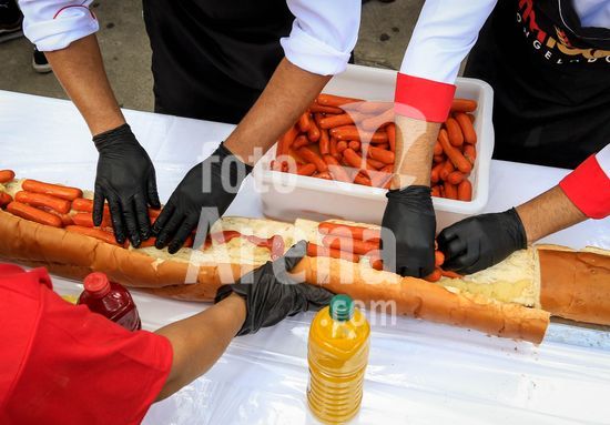 2895756 Em comemoração aos aniversário de 64 anos da emancipação da cidade, Osasco, na região metropolitana de São Paulo, confecciona neste sábado (28), o maior cachorro quente do Brasil com 64 metros, que será distribuído para população.