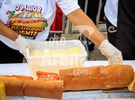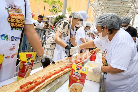 2895752 Em comemoração aos aniversário de 64 anos da emancipação da cidade, Osasco, na região metropolitana de São Paulo, confecciona neste sábado (28), o maior cachorro quente do Brasil com 64 metros, que será distribuído para população.