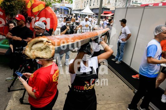 2895734 Em comemoração aos aniversário de 64 anos da emancipação da cidade, Osasco, na região metropolitana de São Paulo, confecciona neste sábado (28), o maior cachorro quente do Brasil com 64 metros, que será distribuído para população.