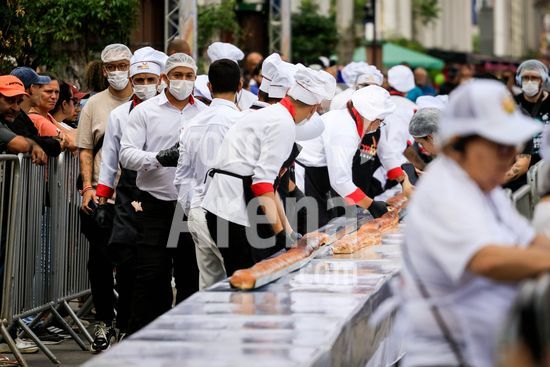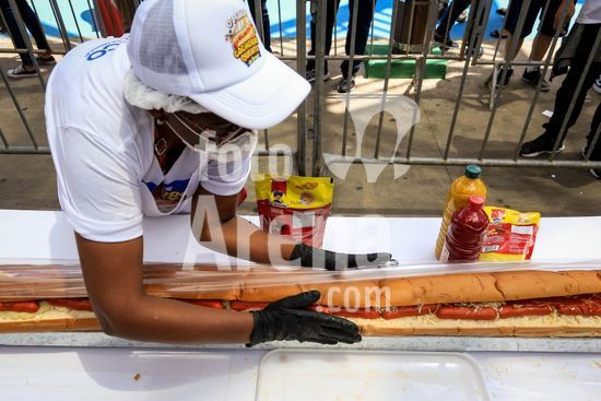 2895726 Em comemoração aos aniversário de 64 anos da emancipação da cidade, Osasco, na região metropolitana de São Paulo, confecciona neste sábado (28), o maior cachorro quente do Brasil com 64 metros, que será distribuído para população.