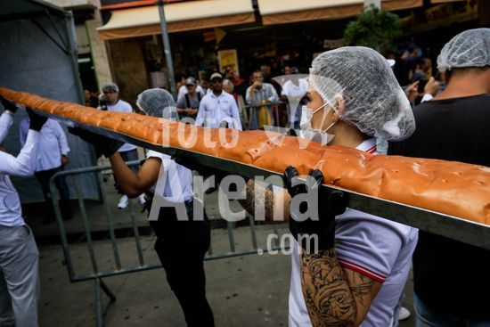 2895745 Em comemoração aos aniversário de 64 anos da emancipação da cidade, Osasco, na região metropolitana de São Paulo, confecciona neste sábado (28), o maior cachorro quente do Brasil com 64 metros, que será distribuído para população. Na foto, pão gigante usado para confecção do cachorro quente.