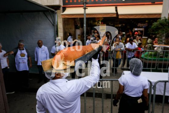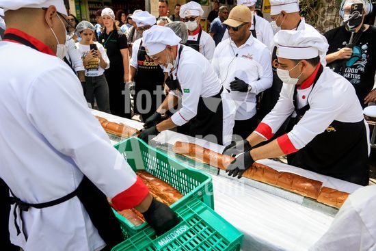 2895740 Em comemoração aos aniversário de 64 anos da emancipação da cidade, Osasco, na região metropolitana de São Paulo, confecciona neste sábado (28), o maior cachorro quente do Brasil com 64 metros, que será distribuído para população. Na foto, pão gigante usado para confecção do cachorro quente.