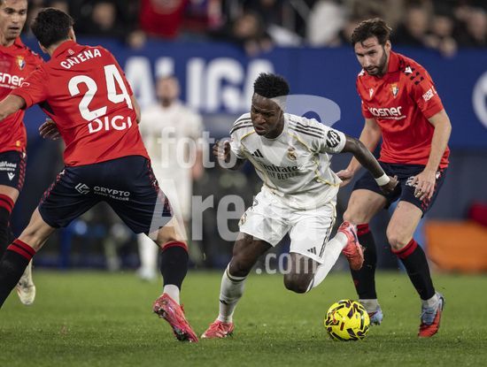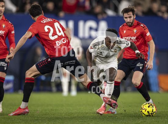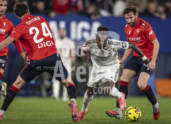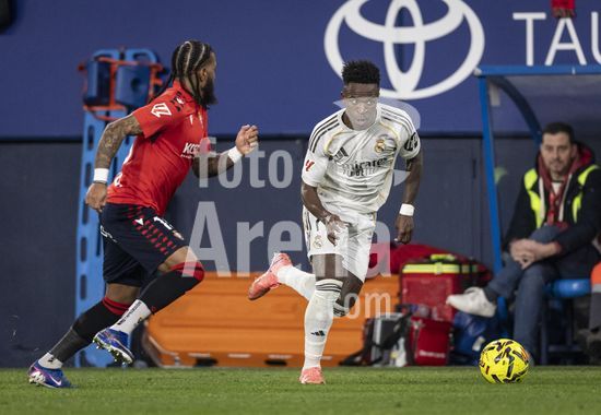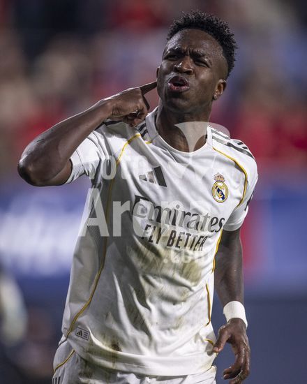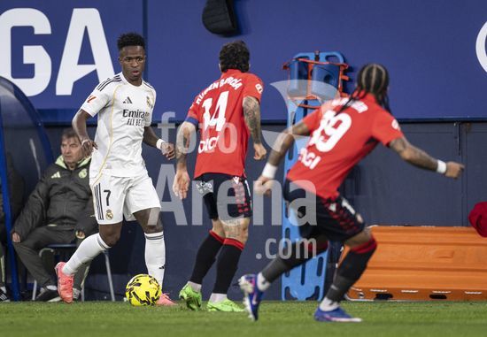 PAMPLONA, ESPANHA - 21 DE FEVEREIRO: Vinicius Junior, do Real Madrid, durante uma partida da LaLiga EA Sports entre Osasuna e Real Madrid no Estadio El Sadar, em 21 de fevereiro de 2026, em Pamplona, Espanha. (Foto de Ricardo Nogueira/Sports Press Photo) (Ricardo Nogueira/Sports Press Ph / SPP)