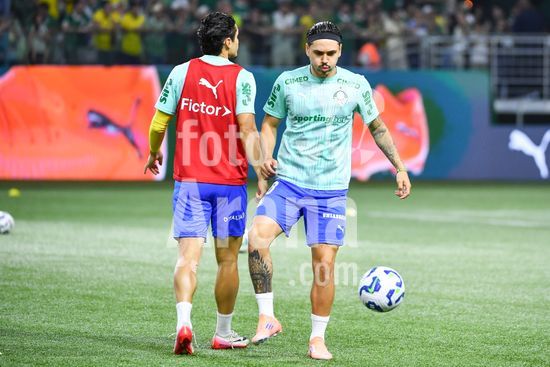 2846845 Raphael Veiga do Palmeiras durante aquecimento para a partida entre Palmeiras x Fluminense, válida pela trigésima quinta rodada do Campeonato Brasileiro de Futebol 2025, neste sábado (22), no Allianz Parque, SP.