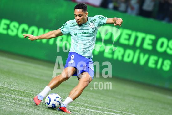 2846855 Vitor Roque do Palmeiras durante aquecimento para a partida entre Palmeiras x Fluminense, válida pela trigésima quinta rodada do Campeonato Brasileiro de Futebol 2025, neste sábado (22), no Allianz Parque, SP.