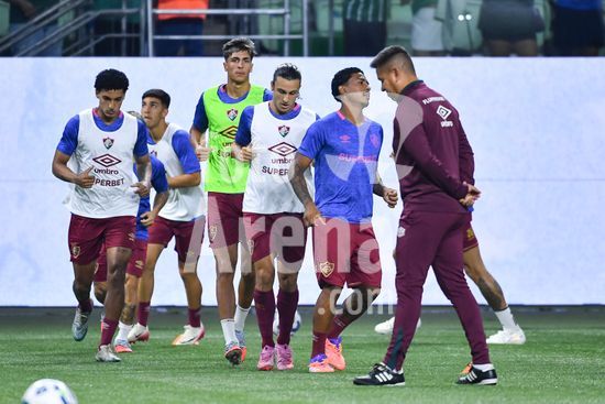 2846857 Jogadores do FLuminense durante aquecimento para a partida entre Palmeiras x Fluminense, válida pela trigésima quinta rodada do Campeonato Brasileiro de Futebol 2025, neste sábado (22), no Allianz Parque, SP.