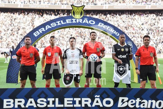 2851133 Equipe de arbitragem e capitães dos times durante partida entre Corinthians x Botafogo, válida pela trigésima sexta rodada do Campeonato Brasileiro de Futebol 2025, neste domingo (30), na Neo Química Arena, SP.