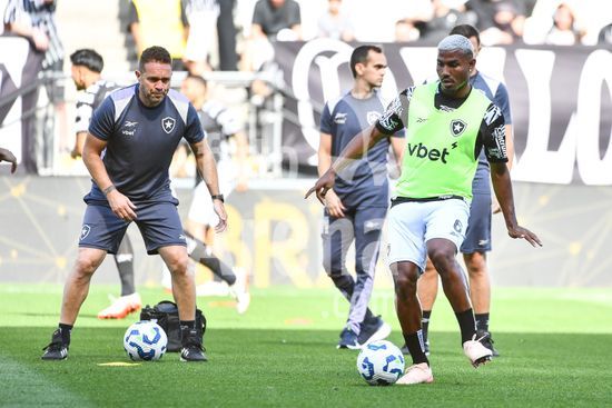 2851143 Jogadores do Botafogo durante aquecimento para a partida entre Corinthians x Botafogo, válida pela trigésima sexta rodada do Campeonato Brasileiro de Futebol 2025, neste domingo (30), na Neo Química Arena, SP.