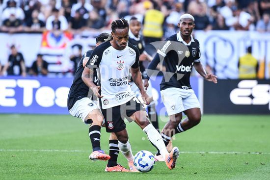 2850886 Joaquín Correa do Botafogo (Esquerda) e Kauê do Corinthians (Direita) disputam a bola, durante partida entre Corinthians x Botafogo, válida pela trigésima sexta rodada do Campeonato Brasileiro de Futebol 2025, neste domingo (30), na Neo Química Arena, SP.