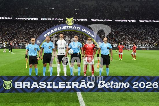 2919874 Equipe de arbitragem e capitães dos times durante partida entre Corinthians x Internacional, válida pela decima rodada do Campeonato Brasileiro de Futebol 2026, neste domingo (5), na Neo Química Arena, SP.