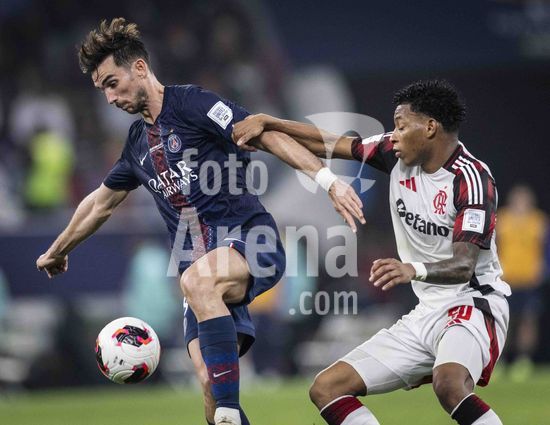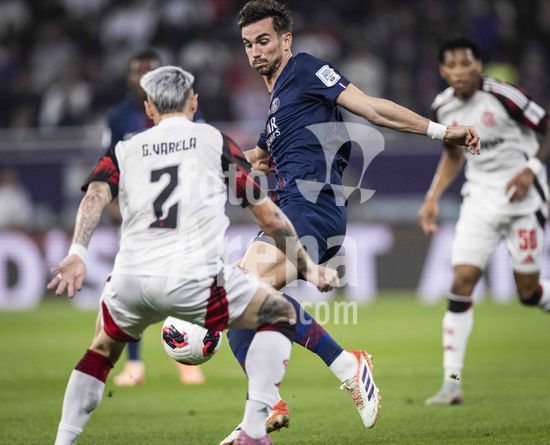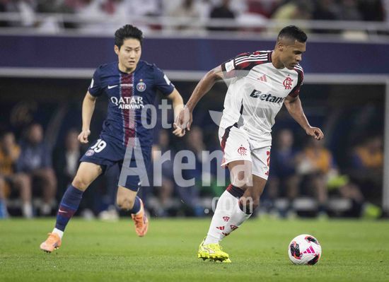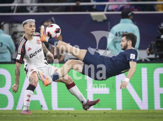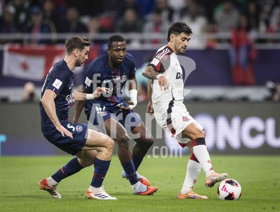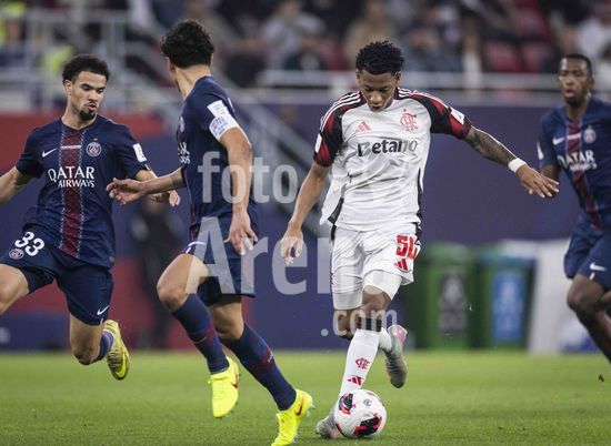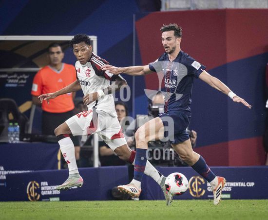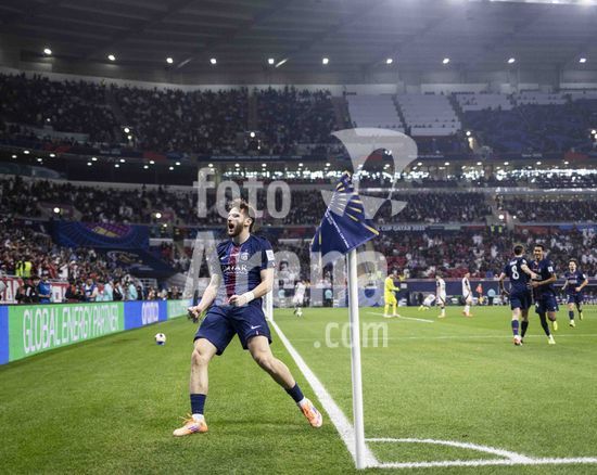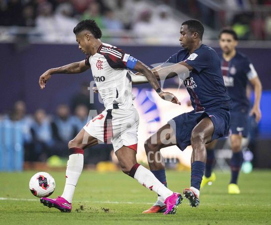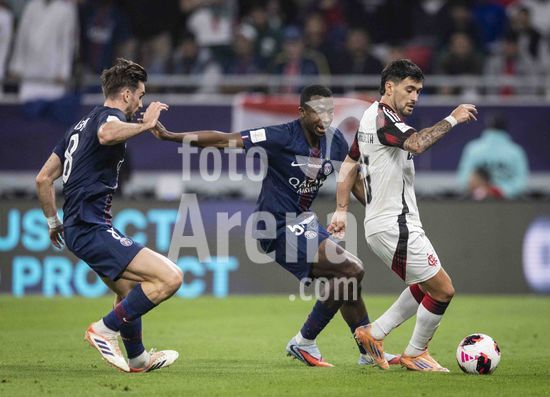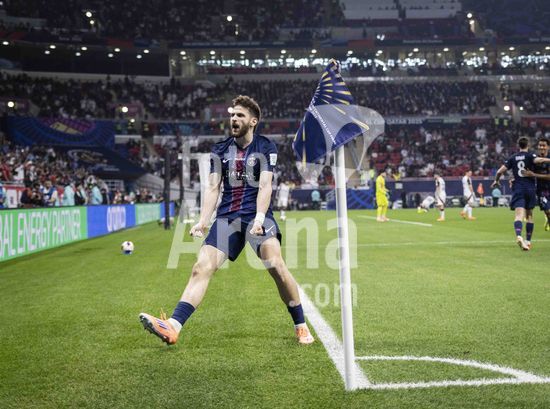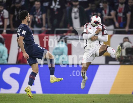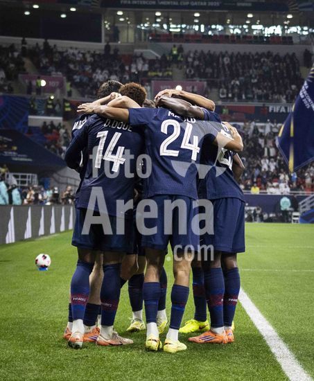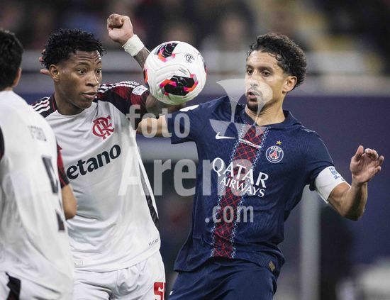 DOHA, CATAR - 17 DE DEZEMBRO: Marquinhos, do Paris Saint-Germain, ergue o trofeu da Copa Intercontinental apos a vitoria do Paris Saint-Germain na final da Copa Intercontinental da FIFA 2025 contra o CR Flamengo, no Estadio Ahmad Bin Ali, em 17 de dezembro de 2025, em Doha, Catar. (Foto de Ricardo Nogueira/Sports Press Photo) (Sports Press Photo / SPP)