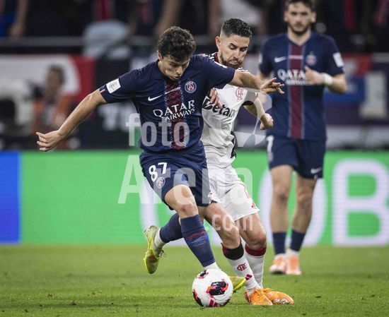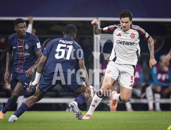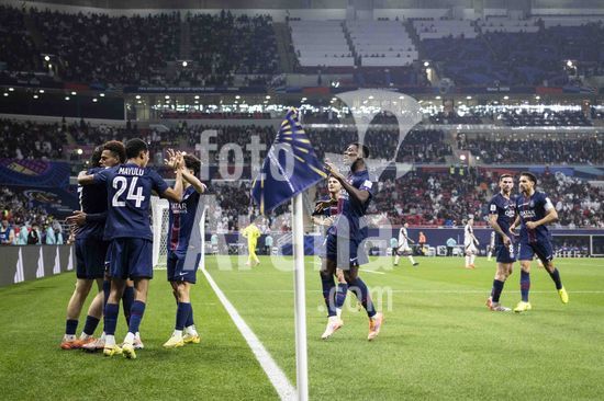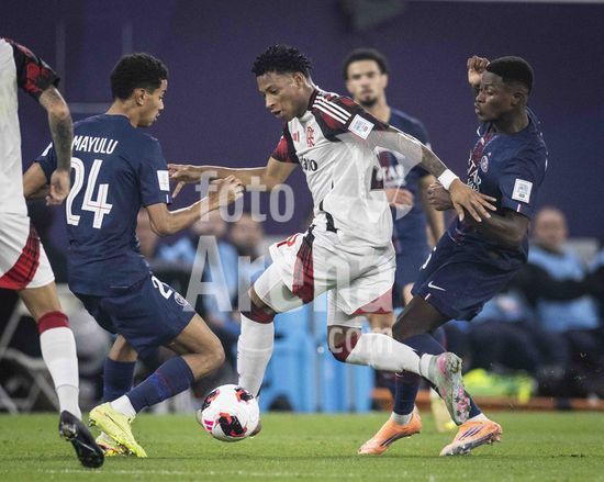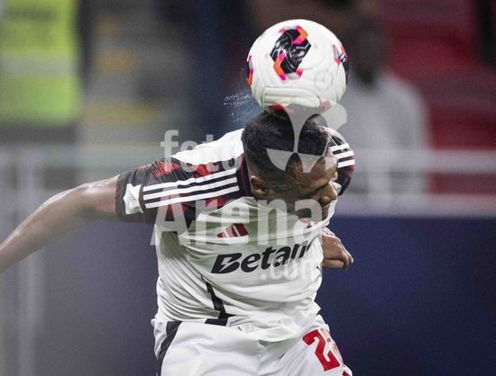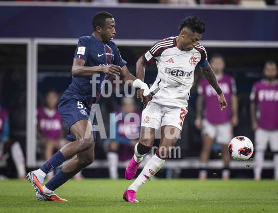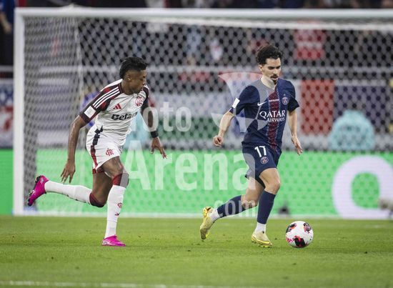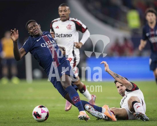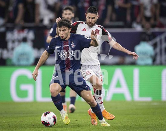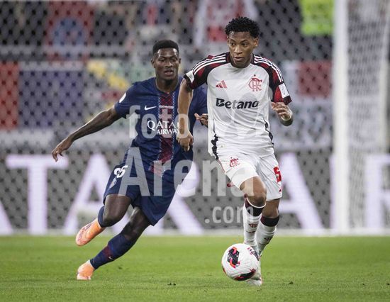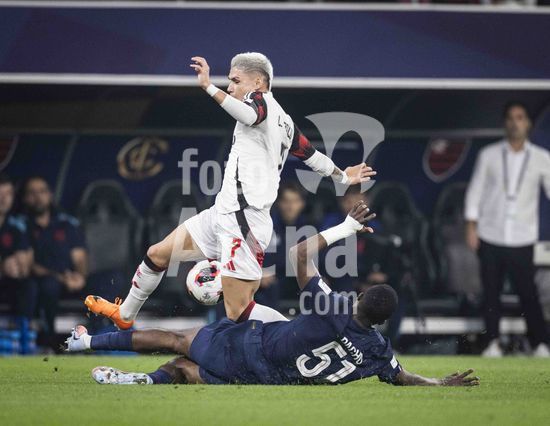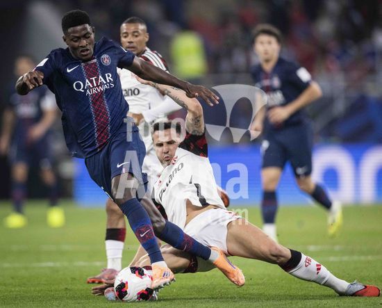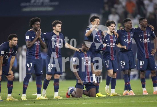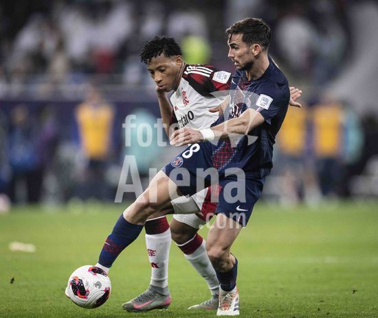 DOHA, CATAR - 17 DE DEZEMBRO: Marquinhos, do Paris Saint-Germain, ergue o trofeu da Copa Intercontinental apos a vitoria do Paris Saint-Germain na final da Copa Intercontinental da FIFA 2025 contra o CR Flamengo, no Estadio Ahmad Bin Ali, em 17 de dezembro de 2025, em Doha, Catar. (Foto de Ricardo Nogueira/Sports Press Photo) (Sports Press Photo / SPP)