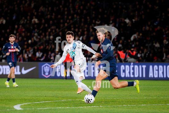 2867838 Thibault De Smet, do Paris FC, e Illia Zabarnyi, do Paris Saint-Germain, durante a partida da Copa da Franca - 32 avos de final entre Paris Saint-Germain e Paris FC no Parc des Princes. (Pauline Figuet / SPP)