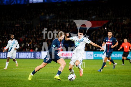 2867824 Illia Zabarnyi, do Paris Saint-Germain, e Mathieu Cafaro, do Paris FC, durante a partida da Copa da Franca - 32 avos de final entre Paris Saint-Germain e Paris FC no Parc des Princes. (Pauline Figuet / SPP)