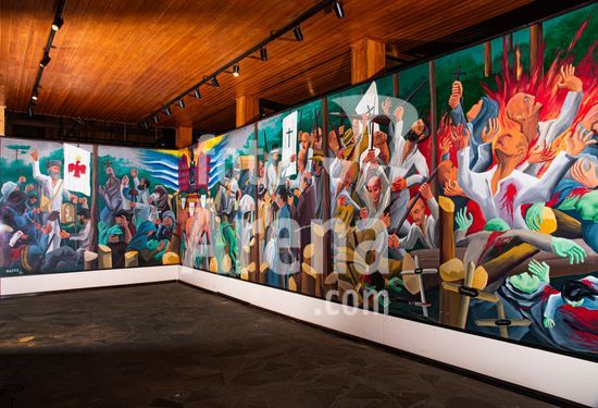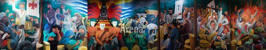 2910821 Vista do painel O Contestado ? Terra Contestada, do artista Hassis, na cidade de Caçador, SC.