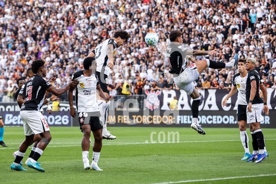 2932593 Gustavo Henrique (Corinthians) cabeceia durante a partida entre Corinthians e Vasco, válida pela 13ª rodada do Brasileirão, realizada na tarde deste domingo (26) na Neo Química Arena, em São Paulo, SP.
