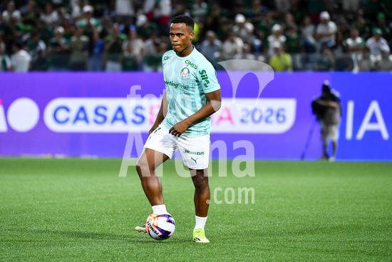 2892690 Jhon Arias do Palmeiras durante aquecimento para a partida entre Palmeiras x Capivariano, válida pelas quartas de final do Campeonato Paulista de Futebol 2026, neste sábado (21), na Arena Crefisa Barueri, em Barueri, SP.