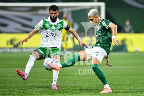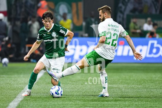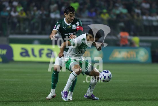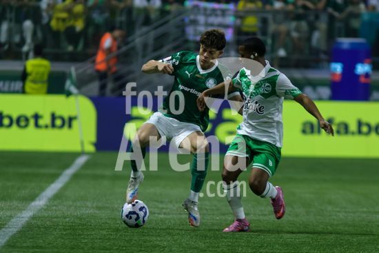 2821997 Bruno Rodrigues do Palmeiras (D) e Abner do Juventude (E) durante partida entre Palmeiras x Juventude, válida pela décima segunda rodada do Campeonato Brasileiro de Futebol 2025 (partida atrasada), neste sábado (11), no Allianz Parque, SP.
