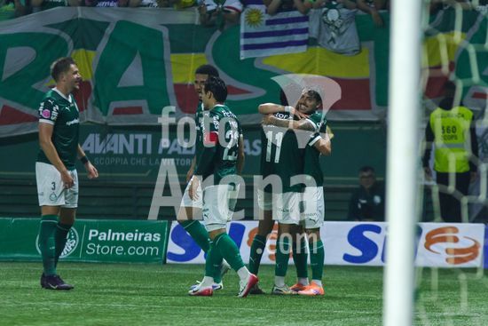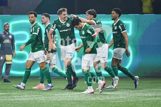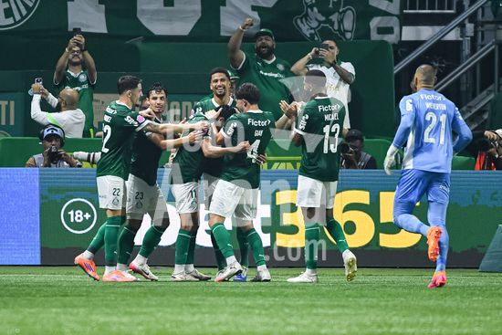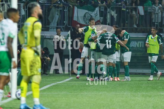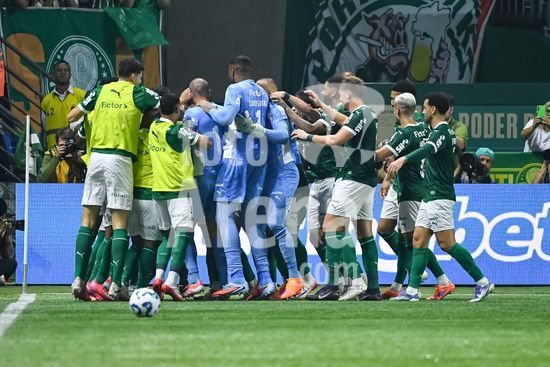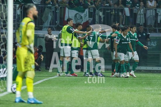 2822046 Jogadores do Palmeiras comeoram a vitória na partida entre Palmeiras x Juventude, válida pela décima segunda rodada do Campeonato Brasileiro de Futebol 2025 (partida atrasada), neste sábado (11), no Allianz Parque, SP.