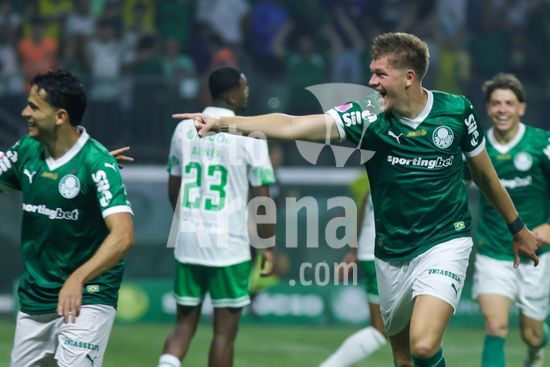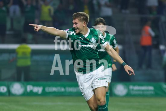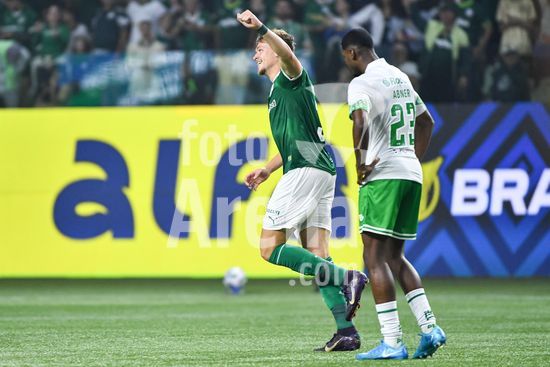 2821998 Bruno Fuchs do Palmeiras comemora o gol, durante partida entre Palmeiras x Juventude, válida pela décima segunda rodada do Campeonato Brasileiro de Futebol 2025 (partida atrasada), neste sábado (11), no Allianz Parque, SP.