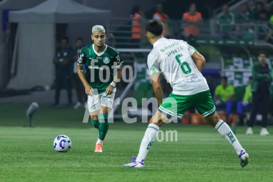 2821952 A. Pereira do Palmeiras (E) durante partida entre Palmeiras x Juventude, válida pela décima segunda rodada do Campeonato Brasileiro de Futebol 2025 (partida atrasada), neste sábado (11), no Allianz Parque, SP.