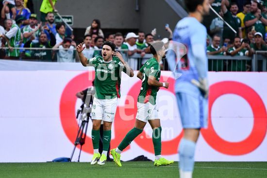 2873137 López do Palmeiras comemora o gol, durante partida entre Palmeiras x São Paulo FC, válida pela quinta rodada do Campeonato Paulista de Futebol 2026, neste sábado (24), na Arena Crefisa Barueri, em Barueri, SP.