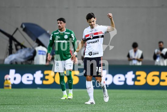 2873135 D. Bobadilla do São Paulo comemora o gol, durante partida entre Palmeiras x São Paulo FC, válida pela quinta rodada do Campeonato Paulista de Futebol 2026, neste sábado (24), na Arena Crefisa Barueri, em Barueri, SP.